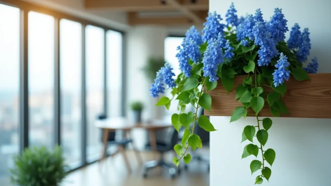 L’aspect visuel des plantes grimpantes à fleurs bleues procure un effet apaisant reconnu en chromothérapie. Le bleu favorise la concentration et stimule la créativité, deux qualités essentielles dans l’environnement professionnel. Cette couleur naturelle contraste agréablement avec les tons neutres habituels des bureaux, créant des points focaux qui reposent le regard et diminuent la monotonie visuelle.